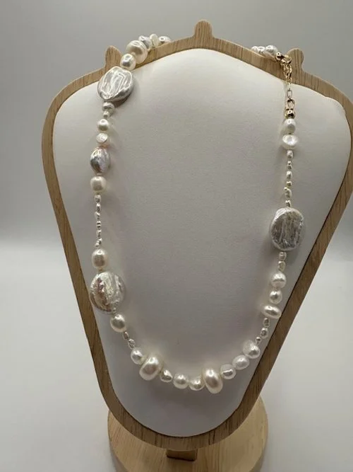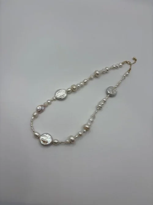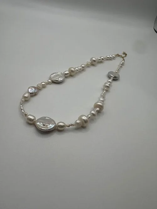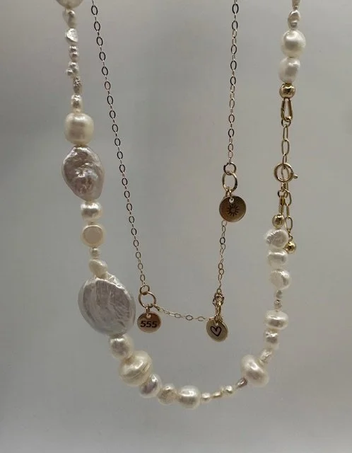 A luminous strand of freshwater pearls, finished with 14k gold-filled findings and an extender for the perfect fit. Maya is timeless elegance with ocean energy woven through every pearl — a one-off piece that feels as rare as you are.